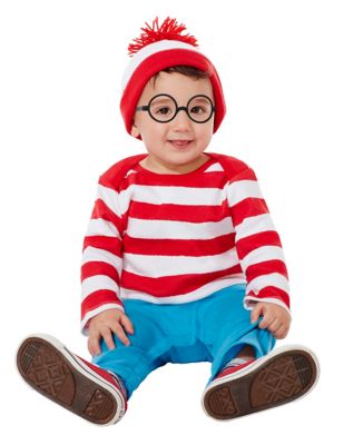 Wheres waldo baby costume. Show off your Baby costume and impress your friends with this top quality selection from Costume SuperCenter. I was originally going to simply sew red stripes onto a white onesie but decided I was up for a greater challenge. Does not include shoes and jeans.